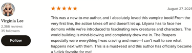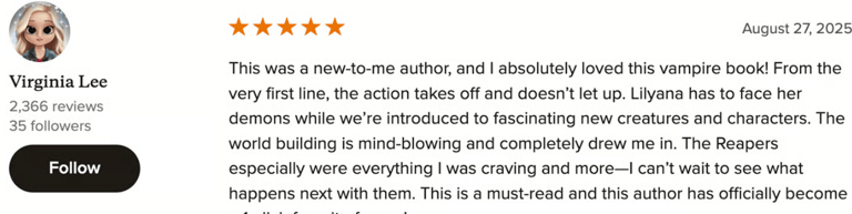 Book Reviews for Death Reaper: Book of Lilyana, A Vampire Hunter Novel Series.